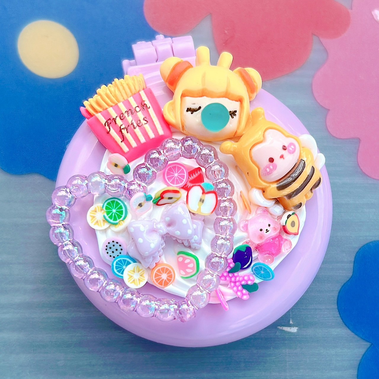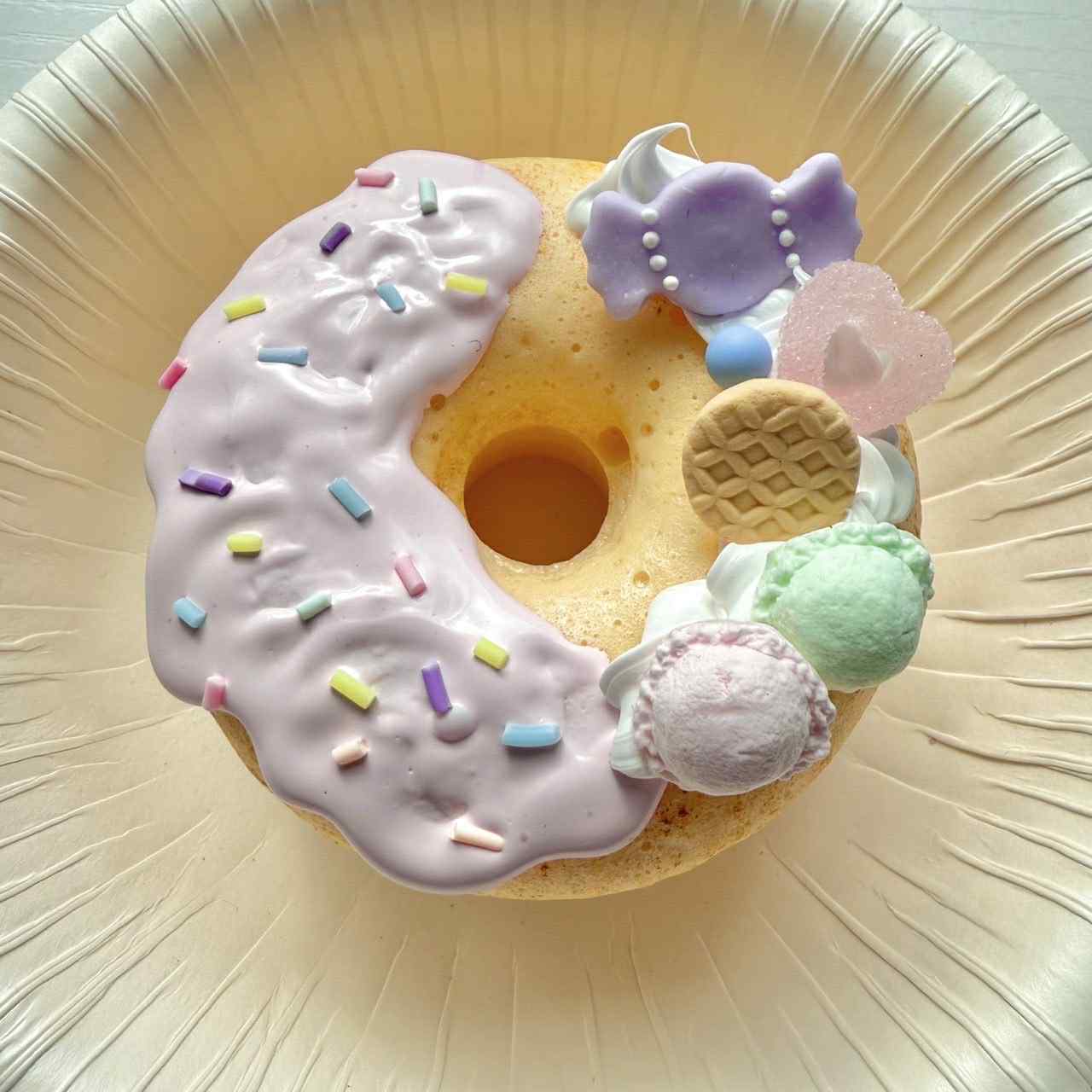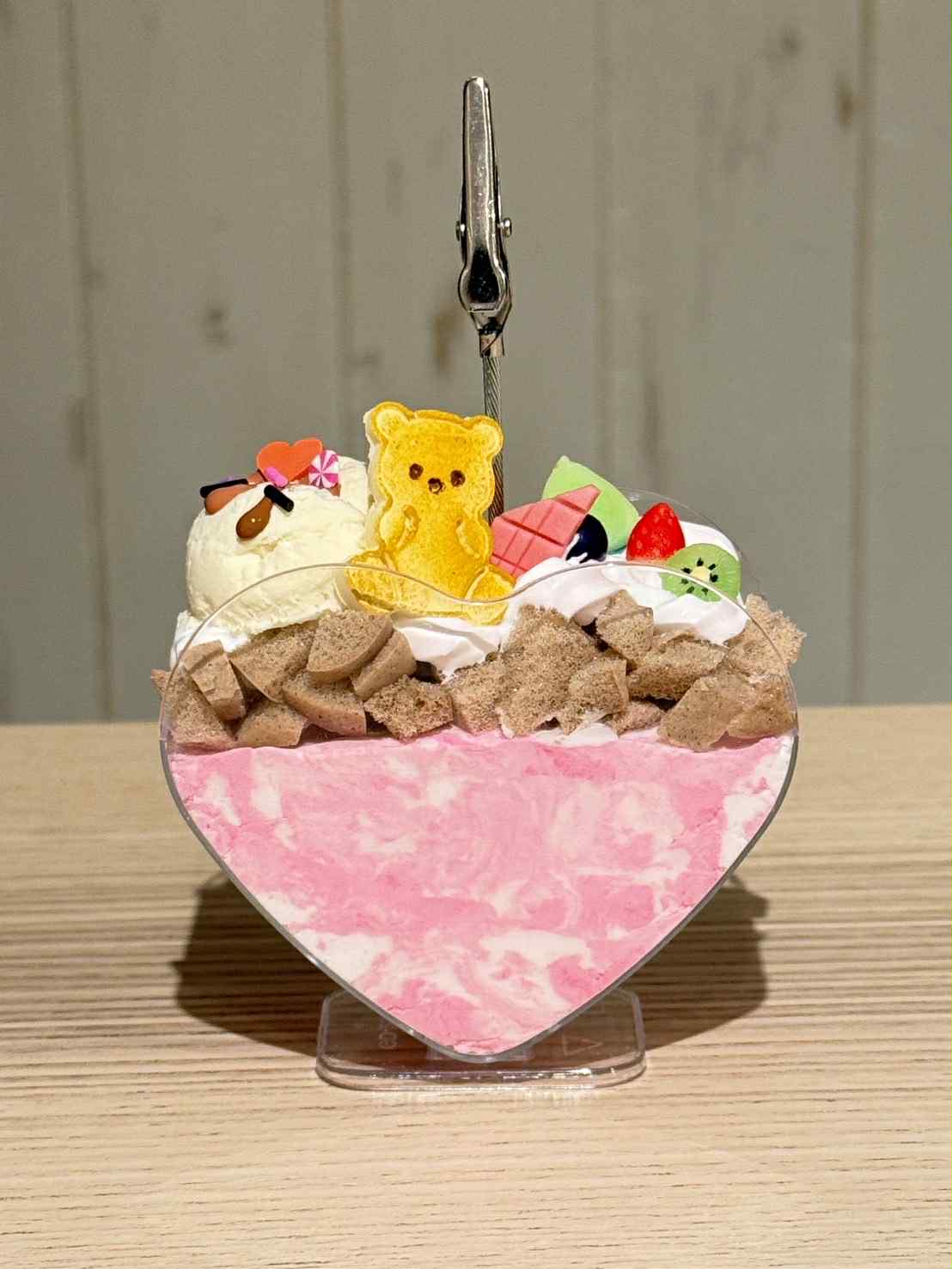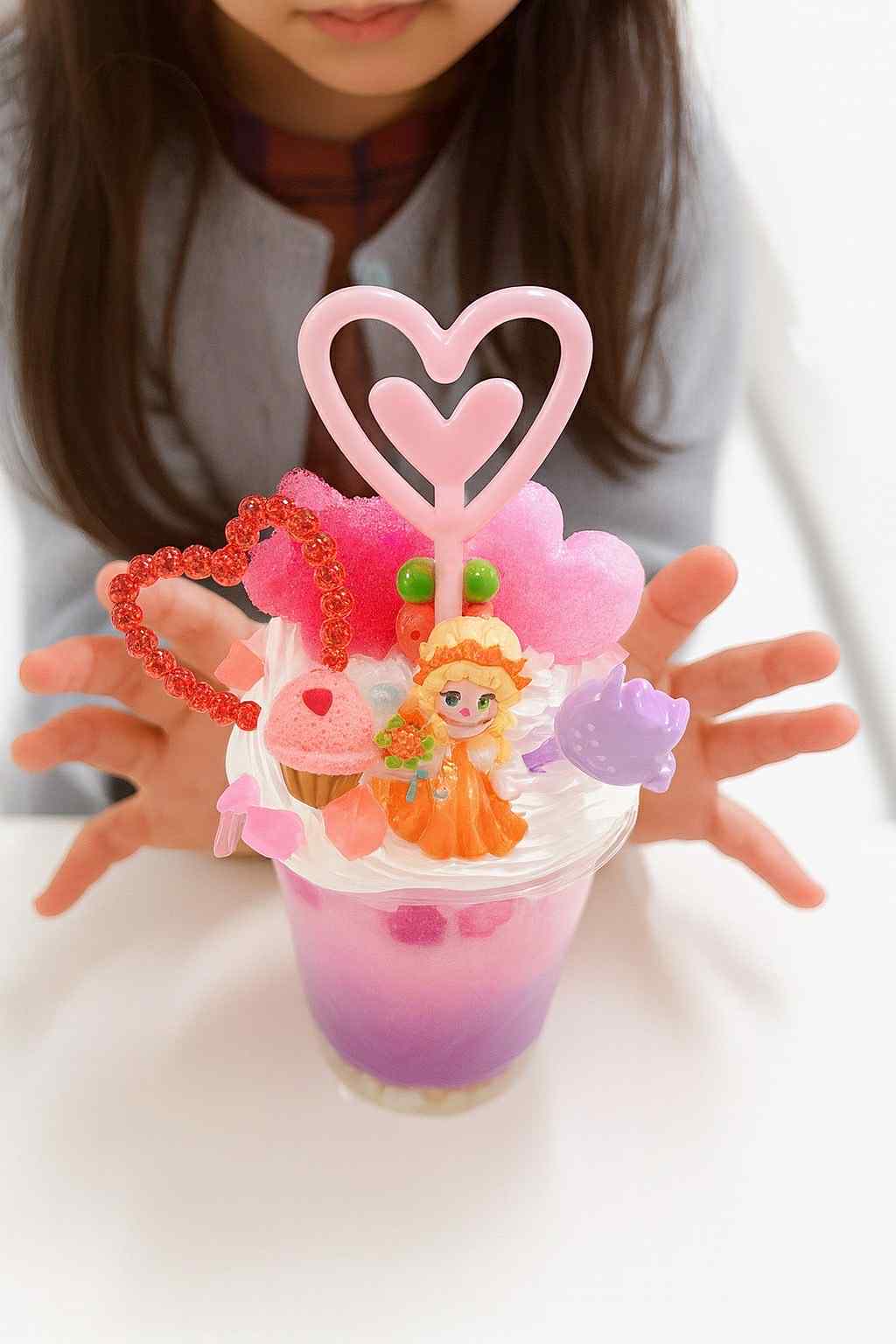 ふわふわホイップの上に、キャンディ・お菓子・フルーツ・くまちゃん・リボンなどカラフルなパーツを自由にデコレーション♡