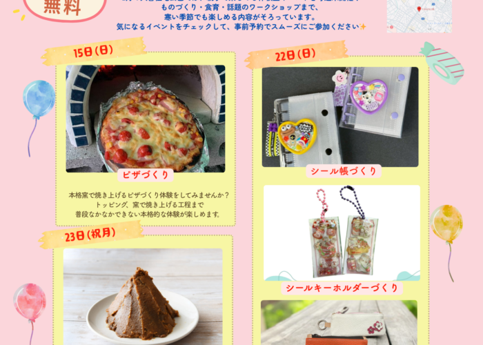 ものづくり・食育・話題のワークショップまで、寒い季節でも楽しめる内容がそろっています。
