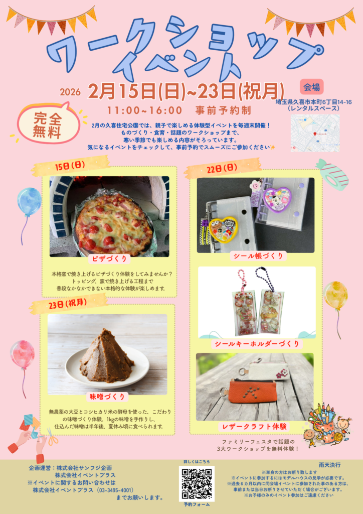 2月の久喜住宅公園では、親子で楽しめる体験型イベントを毎週末開催!